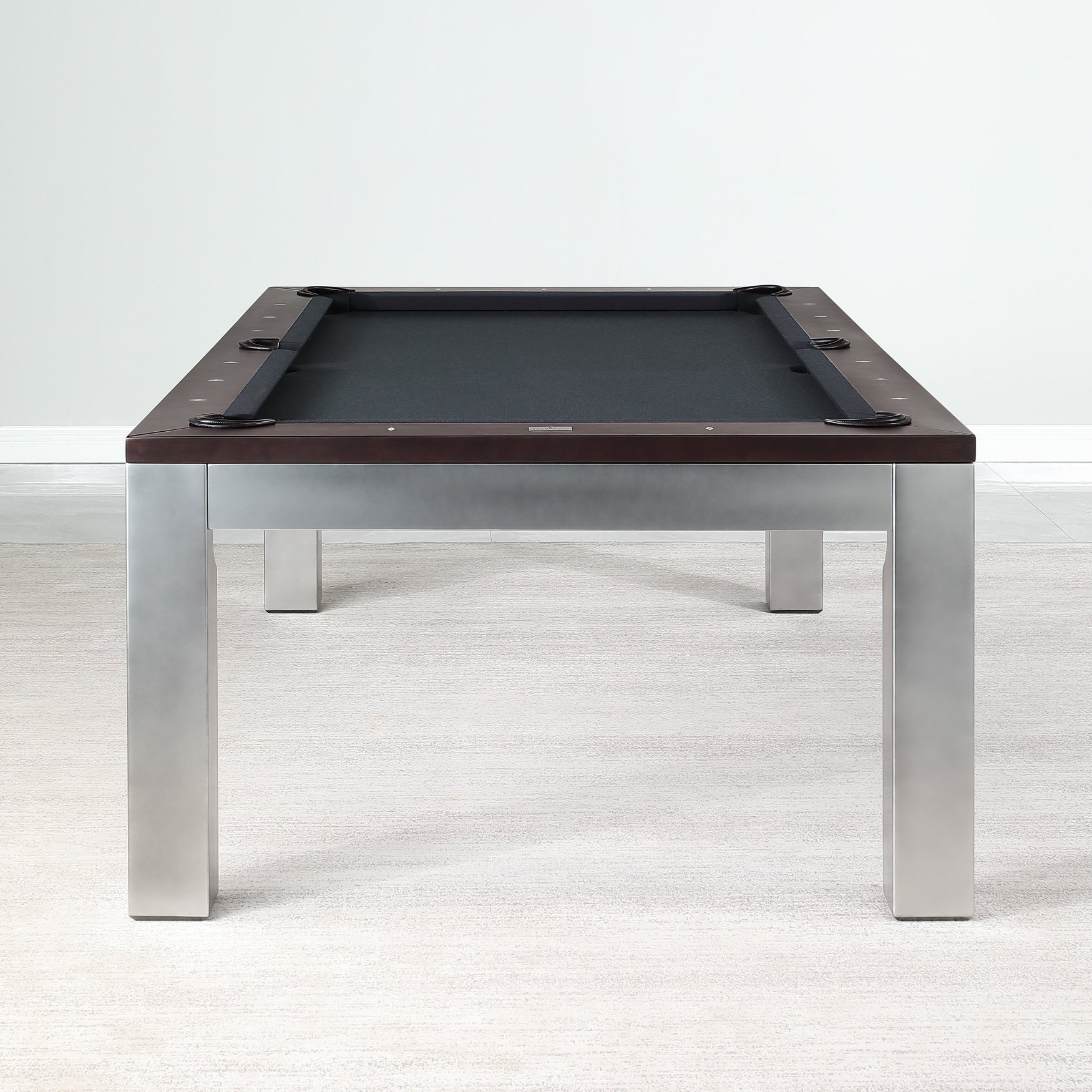 The Monaco slate pool table with dining top is part of the Fairfield Collection of game tables by Playcraft. The contemporary design and sleek, gloss Black on Silver finish will make the Monaco stand out in any game room.