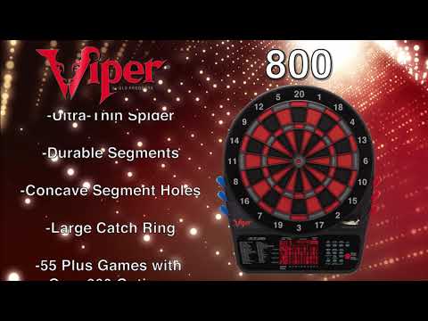 Become a virtuoso of darts with the Viper 800 electronic dartboard! Featuring the regulation size, 15.5” dartboard target face, you’ll play on the same size the masters use. Surrounding the target face is a large missed dart catch ring to protect your wall from errant throws. The 800 features 57 dart games, including the exclusive Spanish and Minnesota Cricket, and 307 scoring options to assure that you’ll never run out of ways to destroy your adversaries. Popular options include Single In/Out, Double In/Out and Double Bull. The stylish color scheme utilizes vibrant red and sharp silver on a deep black to ensure you can always see where your darts land.